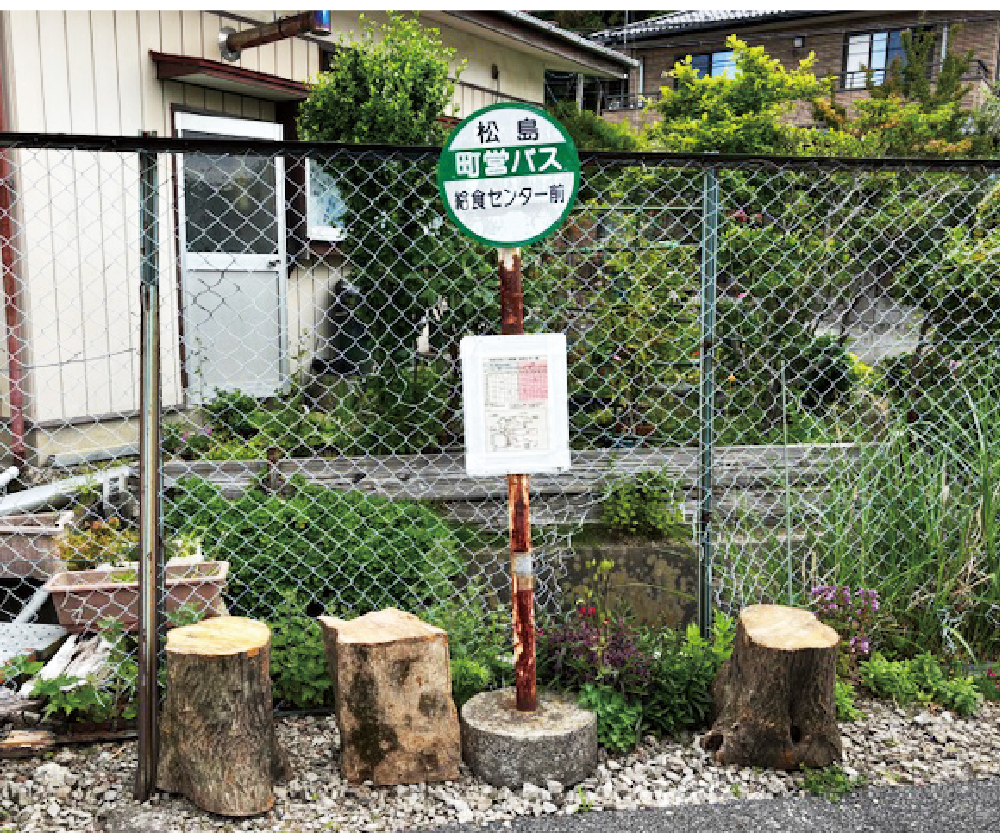 町の承認を得て、町の方の協力によりバス停付近に椅子替わりの切り株を設置できました。